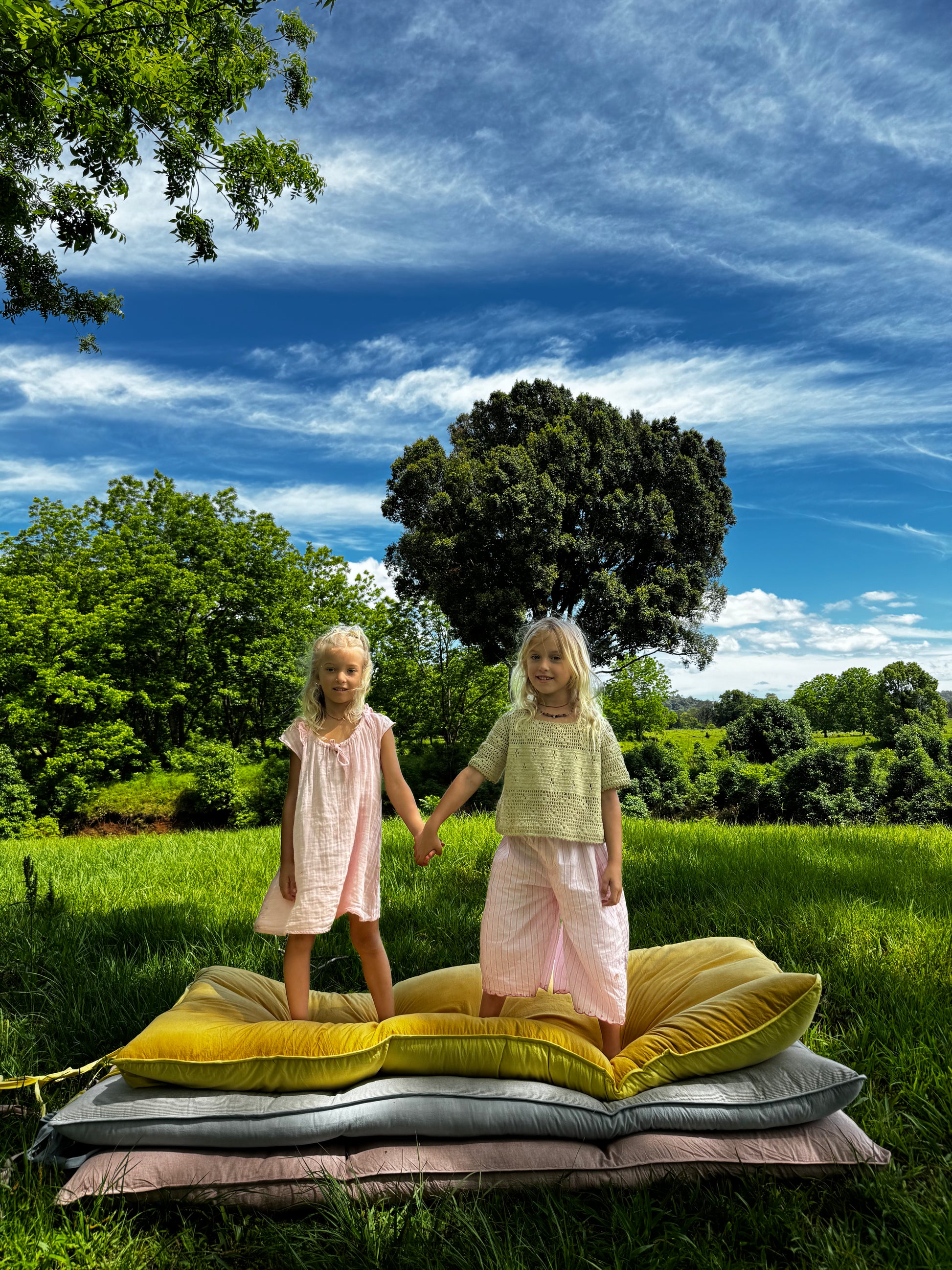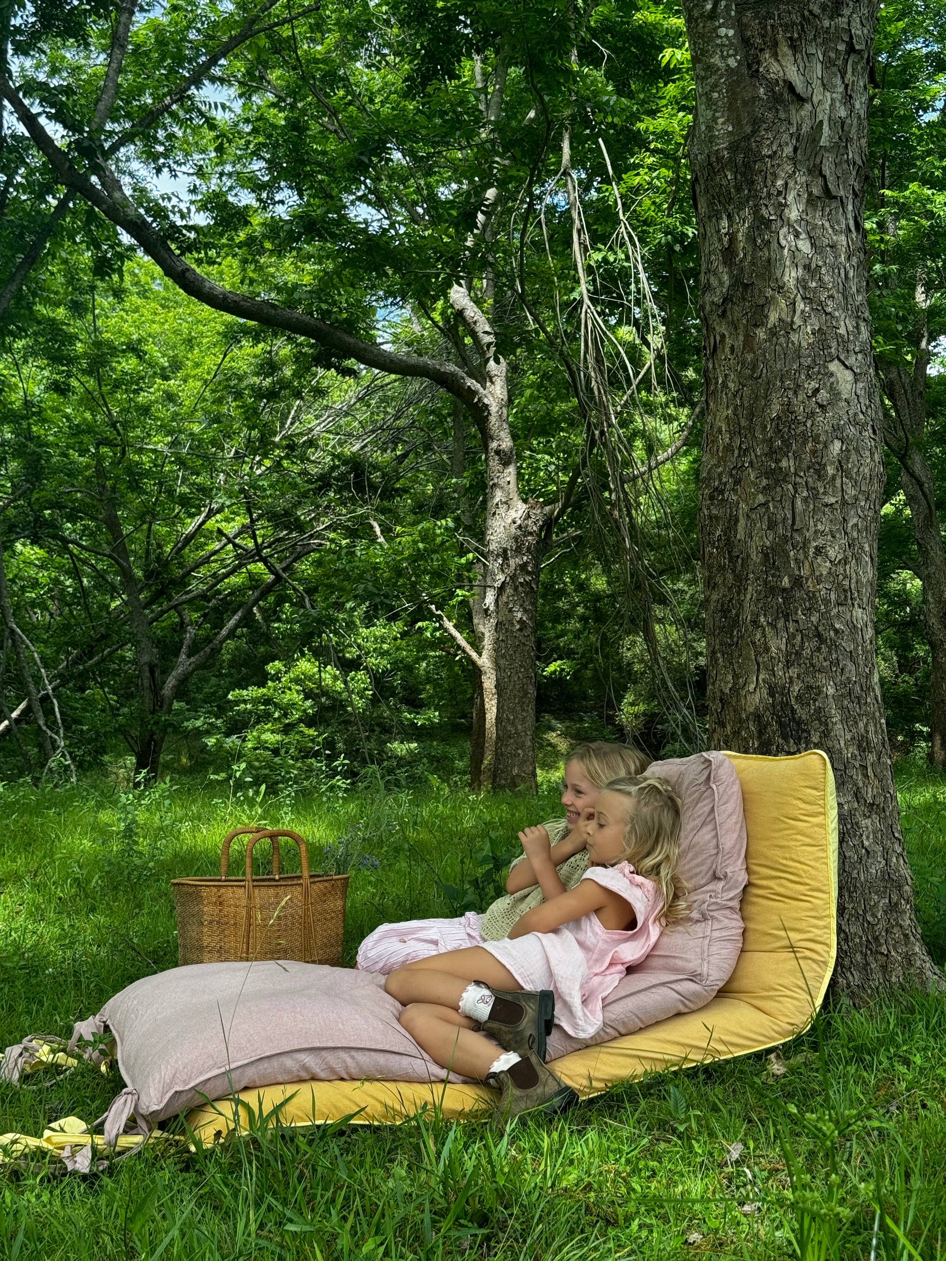 The reversible Roll-Up Bed, two toned with daisy yellow on one side & Lemon on the other. Pick & choose what you love.